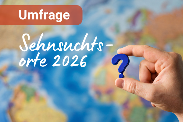 Um zu erfahren, welche Sehnsuchtsorte auf Ihrer Wunschliste ganz oben stehen, haben wir eine kurze Umfrage – maximal 2 Minuten – erstellt.